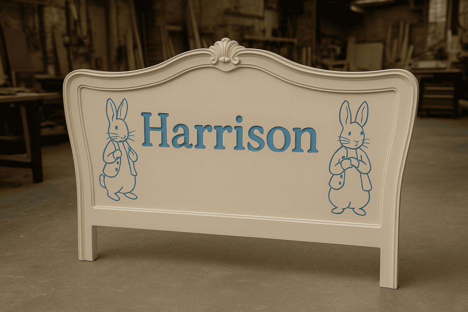 Bespoke headboard with custom name detailing, made to measure in your chosen colours and finish.