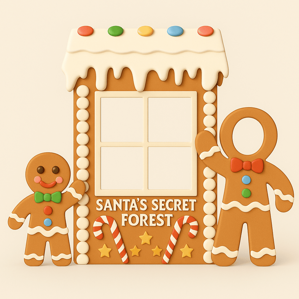We designed and manufactured this festive face-in-hole gingerbread house prop for Santa’s Secret Forest, creating an interactive, family-friendly attraction built entirely from timber and hand-painted for a traditional Christmas finish.